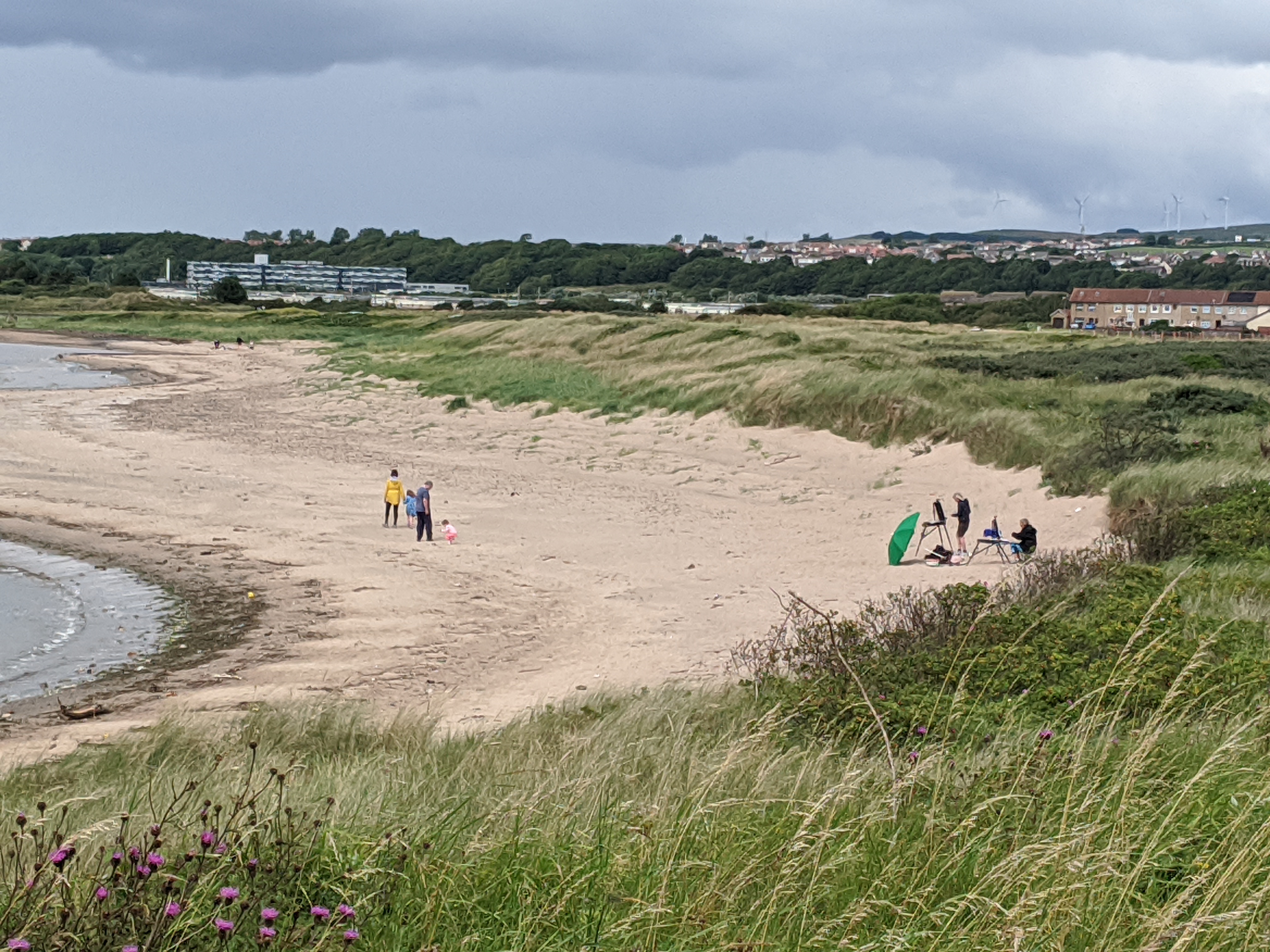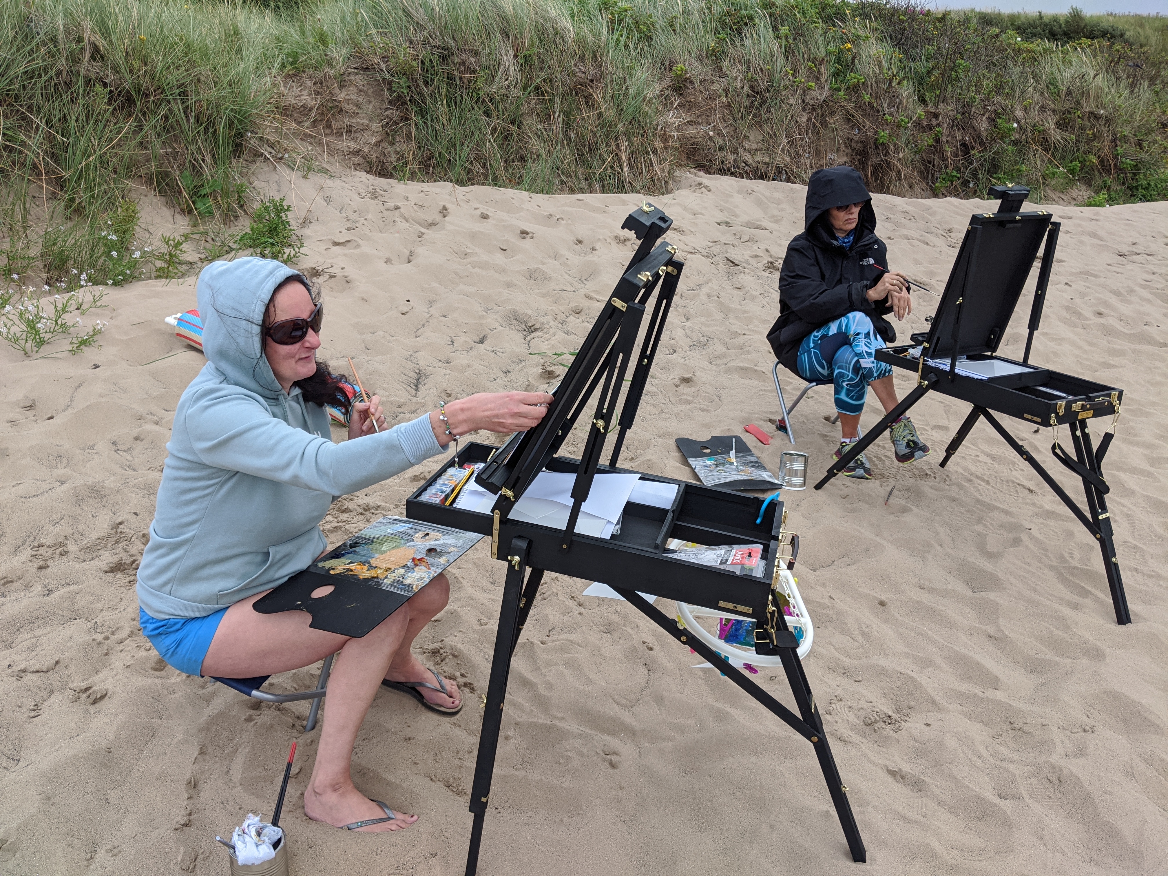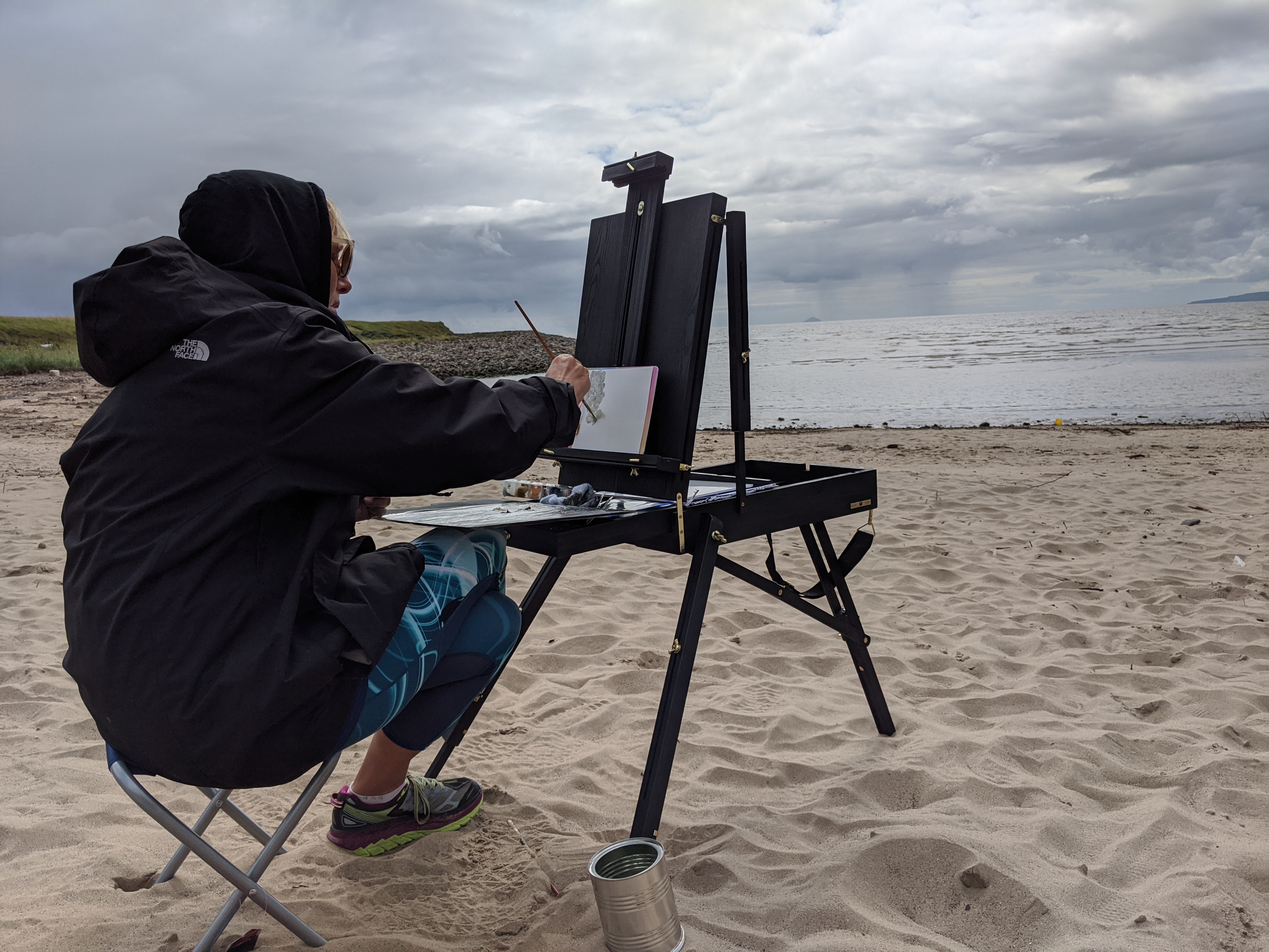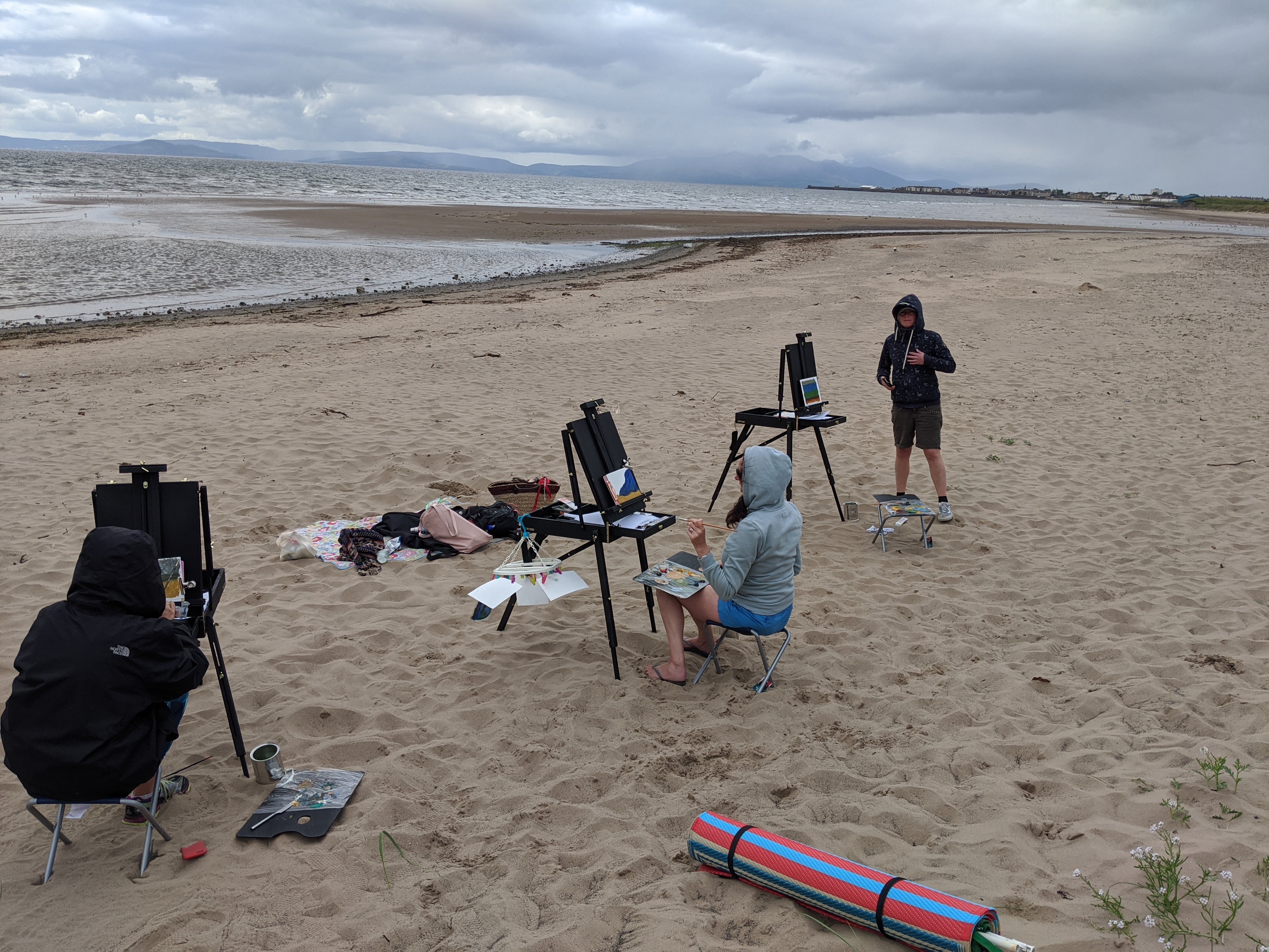 Today I had a full booking of the Wee Dauner coastal painting. We enjoyed exploring the beach and capturing the different light and shadows in oils as the tide pulled back. Beautiful restful and rejuvenating day with Laura Edwards creative director of looptheatre.org, Angela Dickson of yoga71 and mindfulness tutor Gemma Cummins .Feeling thankful we crossed paths and well done in creating some amazing work you’ll treasure forever. Thanks ladies, you did great.