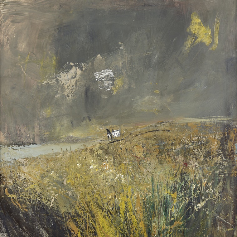 Eardley painted during different seasons and climates with a seriality similar to Claude Monet. Her lyrical paintings include Seeded Grasses and Daisies, September, 1960, which combined collaged elements of real grasses and daisies against a sombre sky. Catterline in Winter, 1963, portrays the same fields overcast by a leaden winter sky, in one of her best loved paintings.